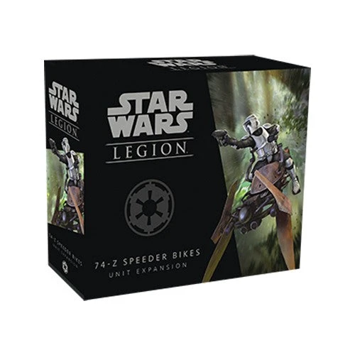 The 74-Z Speeder Bikes Unit Expansion includes a unit of two 74-Z Speeder Bikes, and all the unit cards and upgrade cards you need to expand your forces with these lightning-fast speeders.
