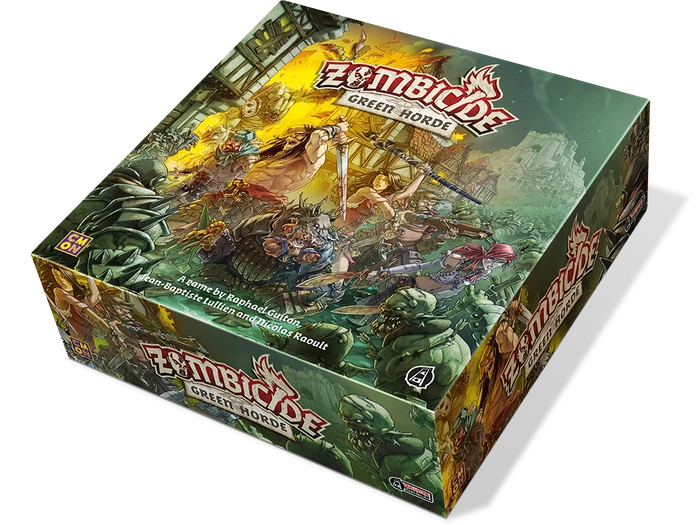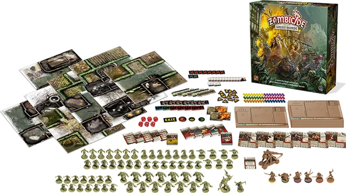 Zombicide: Green Horde is a cooperative board game for 1 to 6 players that is both a standalone game, and fully compatible with Zombicide: Black Plague and its expansions! Players control a party of medieval fantasy survivors as they fight to rid the land of an invasion of zombie orcs controlled by the game itself. Survivors find weapons, learn spells, battle zombies, and gain experience. The more experienced they get, the more powerful they become, but the more zombies rise to face them!