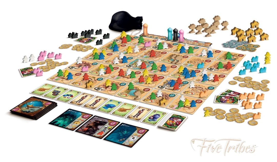 Crossing into the Land of 1001 Nights, your caravan arrives at the fabled Sultanate of Naqala. The old sultan just died and control of Naqala is up for grabs! The oracles foretold of strangers who would maneuver the Five Tribes to gain influence over the legendary city-state. Will you fulfill the prophecy?