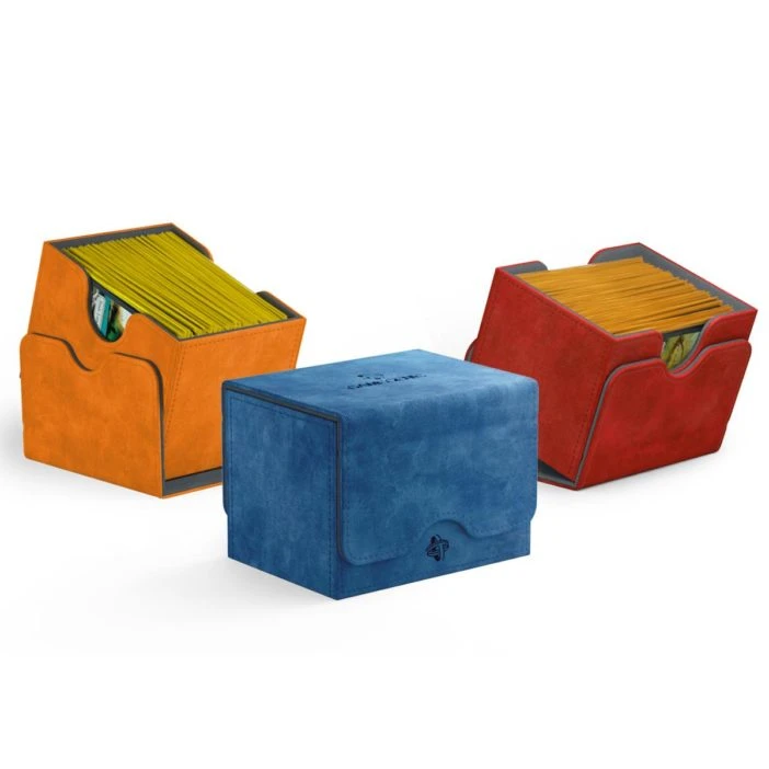The convertible Sidekick provides very easy access to a double-sleeved 100-card deck. The Convertible line is designed to present cards in new and unique ways. Remove the lid, attach it to the bottom or start tilting your box in a wide variety of ways. This elegant deck box is manufactured with Nexofyber material and protects cards inside with a soft microfiber lining. Powerful magnets keep it safely closed.