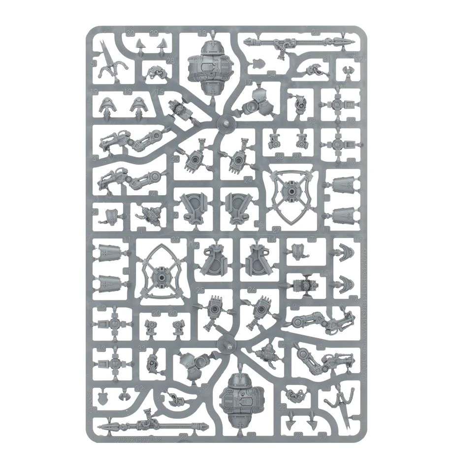 This kit comes as 58 components and is supplied with 2 Citadel 50mm Round bases along with a Cerastus decal sheet that features heraldry for Houses Makabius, Vyronii, Malinax and Coldshroud.