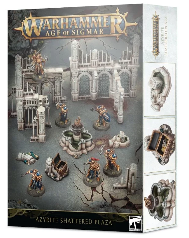Build dark and gothic battlefields for Warhammer Age of Sigmar with the Azyrite Shattered Plaza – a set of modular terrain that makes building ruined townships simple. Whether you’re recreating a run-down quarter of the Cities of Sigmar, the ruins in the Eightpoints itself or a remnant from the Age of Myth, this set is ideal, giving you seven terrain pieces that are easily added to any battlefield. Adding extra levels to battle over and cover to hide behind, they’re perfect for adding tactical depth to your games. Rich, thematic detail makes these terrain pieces a pleasure to paint, build and even use as base decoration for larger models. These sets are also compatible with the Azyrite Ruins kit, giving you limitless possibilities when building your scenery.