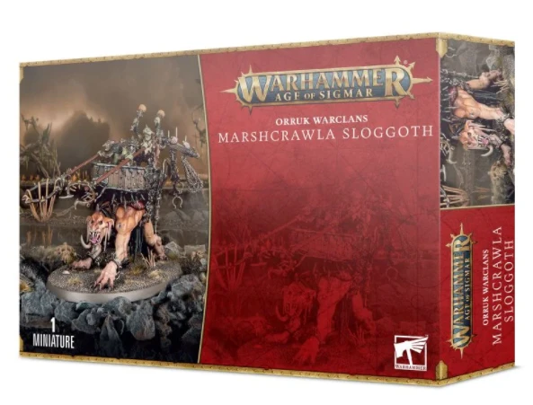 Though primarily concerned with capturing beasts and bodies for the amusement of the Kruleboyz, the crew on a Marshcrawla Sloggoth also hammers out a rhythm that mimics the hooves of Kragnos, the End of Empires and living god of Destruction, beating across the Mortal Realms, driving the orruks and their allies into a frenzy. Rarely a mainstay of the front lines, the grot crews instead steer the Sloggoths to pick off vulnerable individuals, whilst ensuring the surrounding Waaagh! is sufficiently buoyed by the beat of their drums.