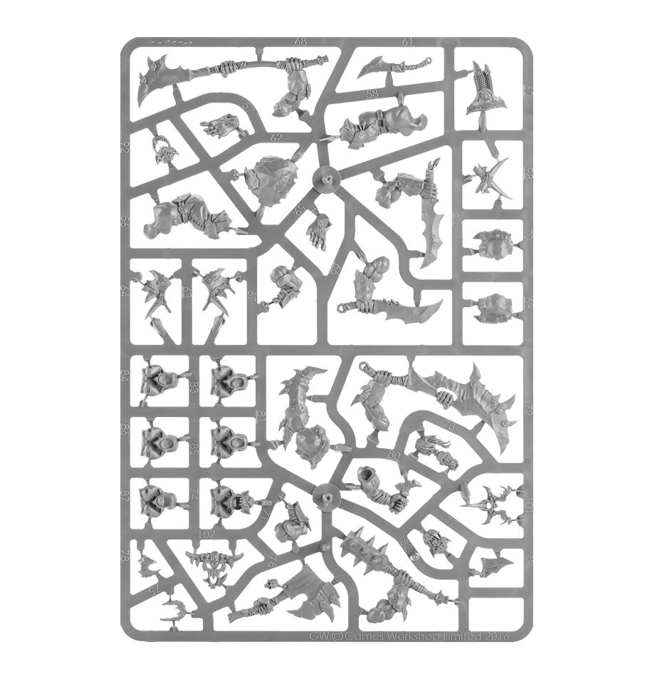This multi-part plastic kit contains the components you’ll need in order to assemble five orruk Brutes! Festooned with trophies of war, featuring massive metal or bone jaws, they can be armed with two choppas, or a double-handed jagged gore-hacka. One in five can be armed with a massive gore-choppa, and one model can be assembled as a Brute Boss, armed with either a boss choppa or a boss klaw and brute smasha. 102 Components in total, with 5 Citadel 40mm Round bases.Â