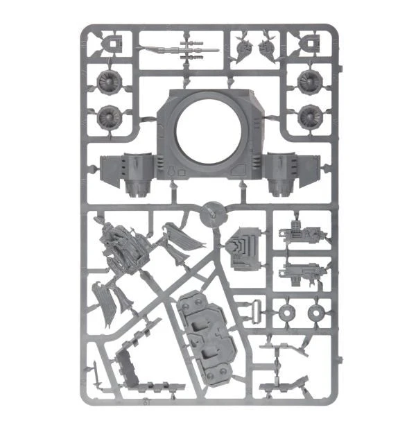 This kit contains 88 components, a flying base and two flying stems with which to make either a Land Speeder Vengeance or a Ravenwing Darkshroud.