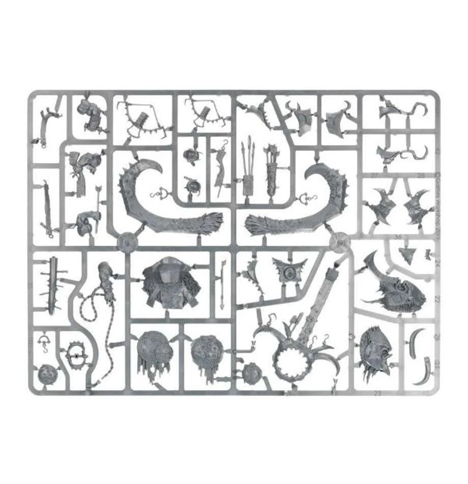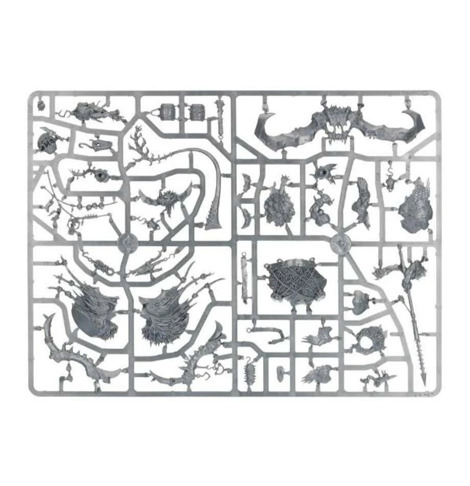 This multi-part plastic kit contains all the components necessary to assemble one Frostlord on Stonehorn, with a Citadel 120x92mm Oval base. The kit can optionally be used to assemble a Huskard or Beastriders on Stonehorn, or a Huskard, Frostlord or Beastriders on Thundertusk.