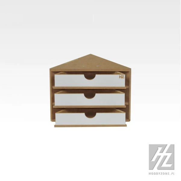 The OM11Â end corner drawers module is made from machine cut (not laser cut) plywood or MDF (dense particle board) wood. This module serves as either an end module or as a corner module to change the arrangement of the Modular Workshop System by 90 degrees. The OM11 can be stacked with the OM12 module. This module can work on its own but it is designed to connect or be stacked with other modules that are part of HobbyZone Modular Workshop System. Modules connect using magnets that are included and you can always change the configuration of the modules according to your storage needs. This module comes in kit form, consists of precision fitted parts and assembly instructions. Wood glue is required for assembly (not included).