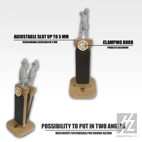 - grip onto figures and miniatures mounted on pins to provide maximum level of stabilization (maximum width of gap – 0.2″ (5mm))