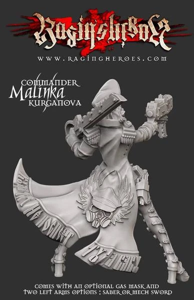 Malinka comes with an optional gas mask and 2 left arm options: saber or mech sword.