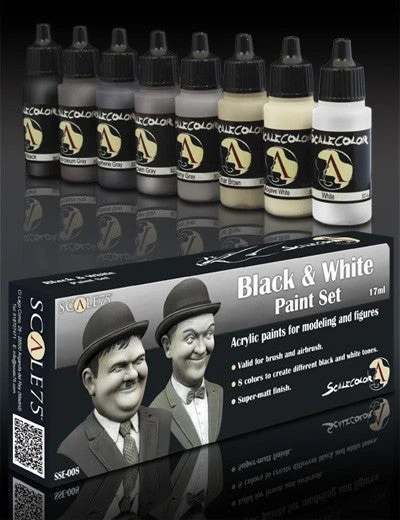 This set is including 8 acrylic paints. You can create various black and white and sepia tones.
