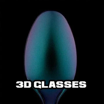 3D Glasses appears red in the bottle but develops a beautiful blue/cyan front facing color that transitions to a magenta.Â